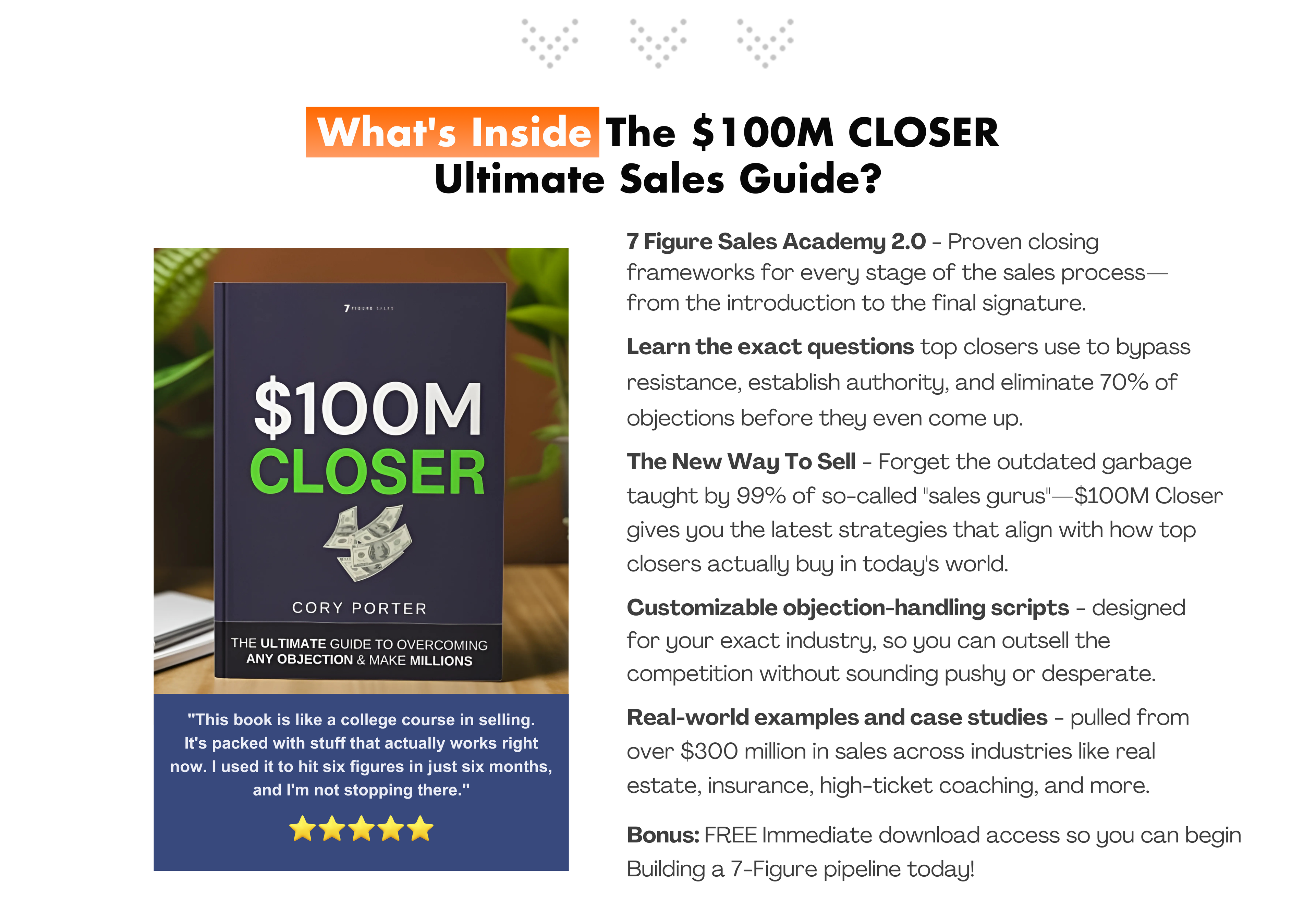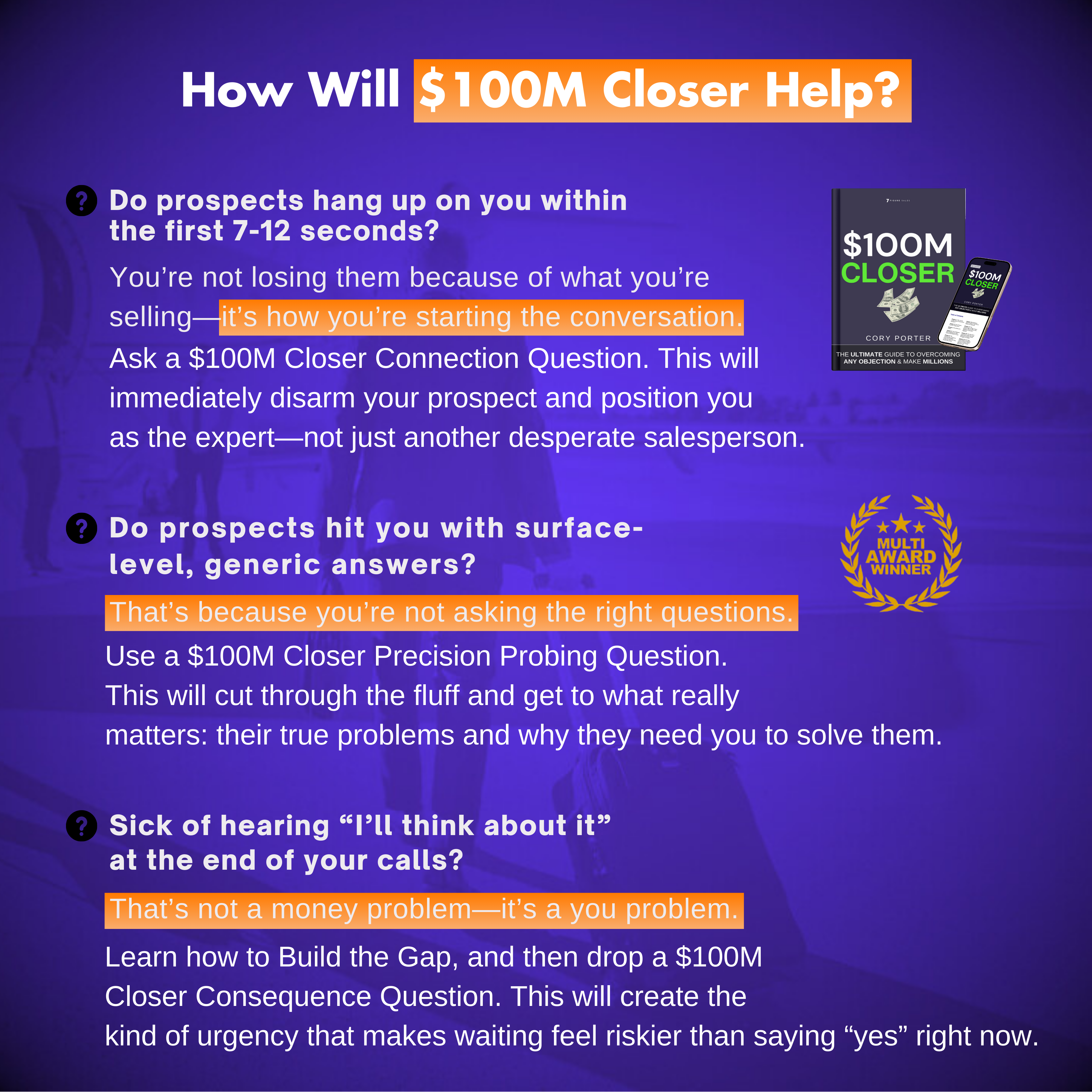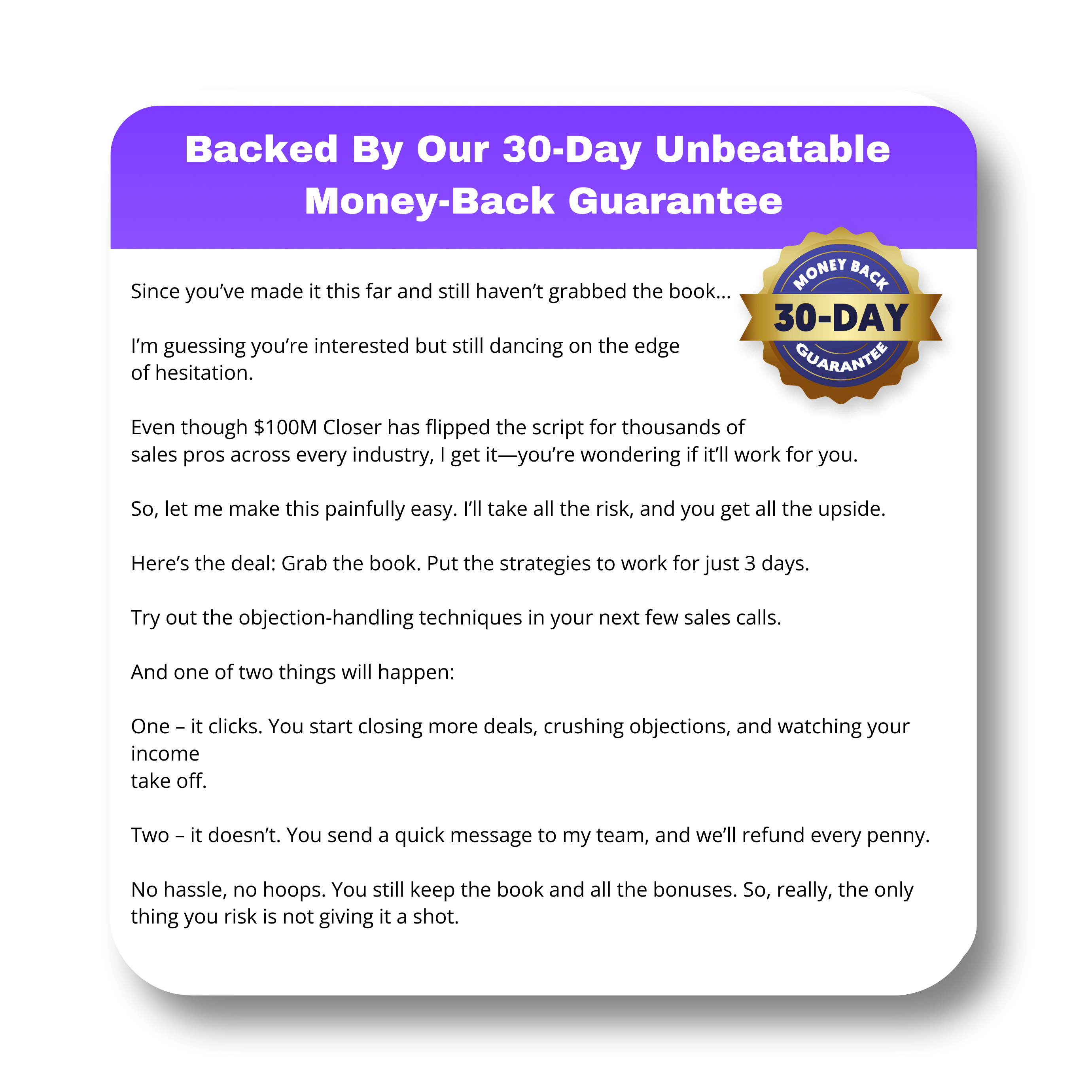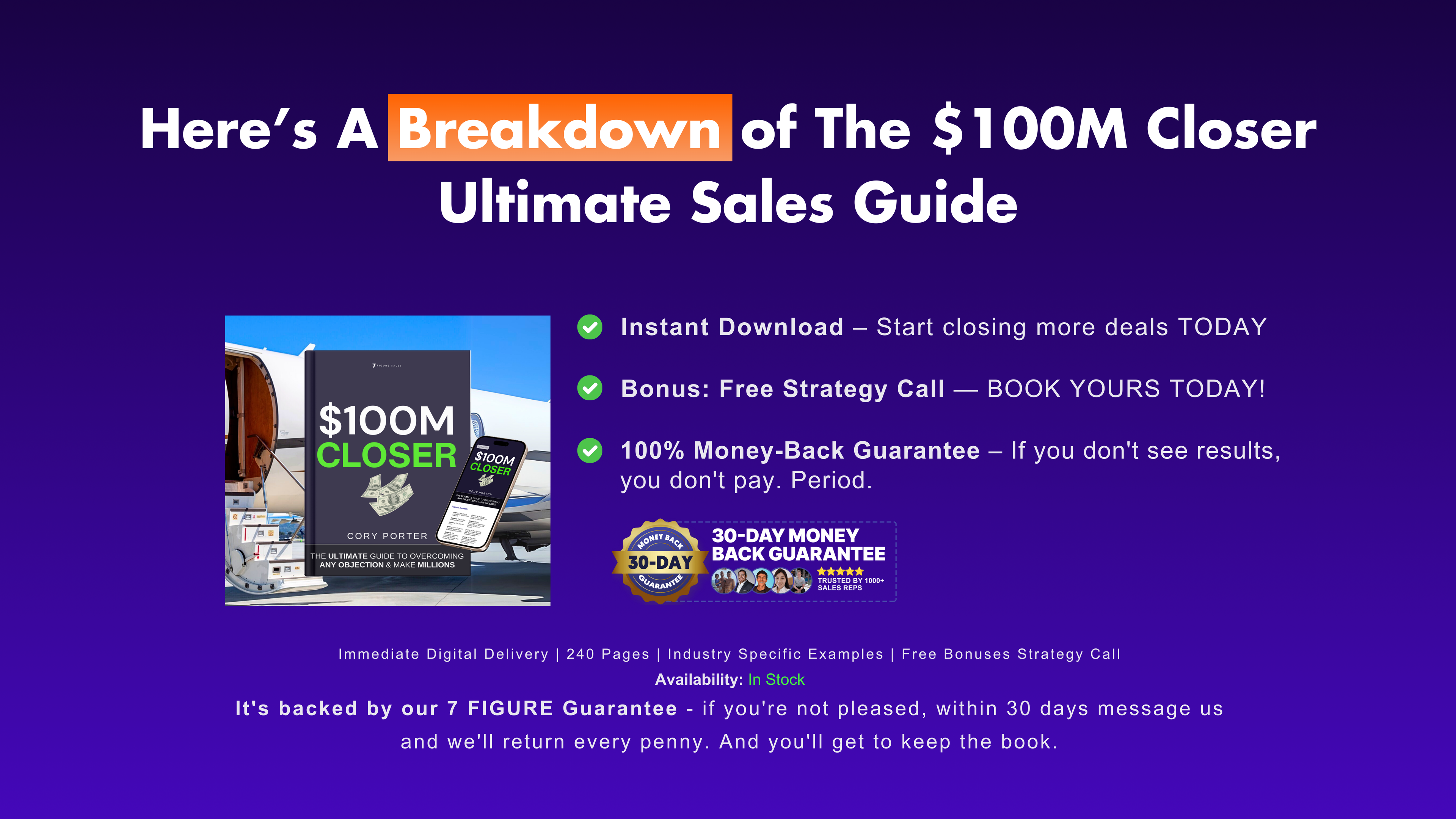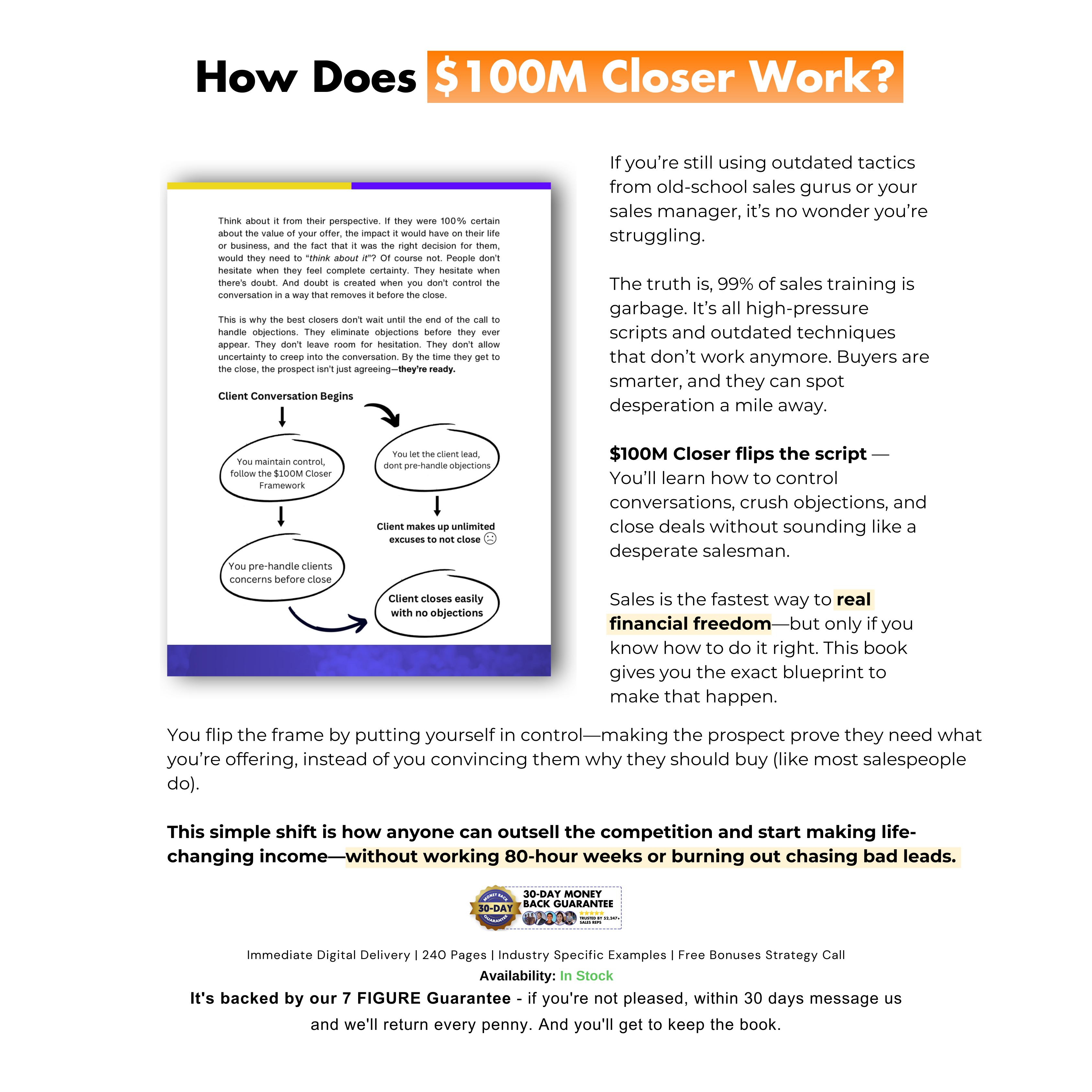 Tired of hearing “I need to think about it” or “It’s too expensive”? $100M Closer is the ultimate playbook that top sales pros use to crush objections, close deals effortlessly, and make high-ticket commissions feel EASY.